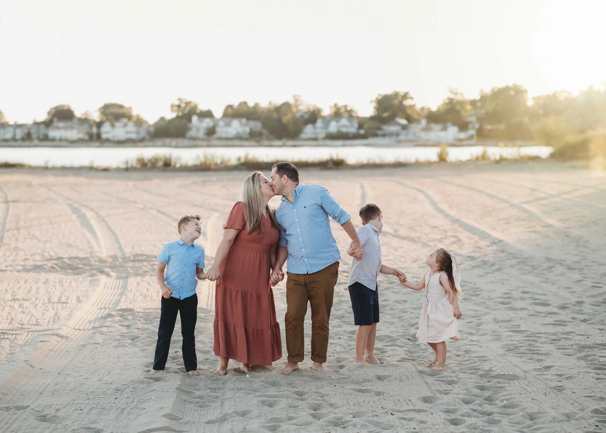 Outdoor family sessions take place an hour or so before sunset — golden hour light is what gives these images that warm, timeless look that holds up for decades. I work with several beautiful locations across Fairfield County and Westchester County, and I'll help you choose the right spot based on your vision and the time of year, from a beach to a field to a farm. Sessions include a mix of classically posed family portraits and casual, candid moments of your family actually having fun together.